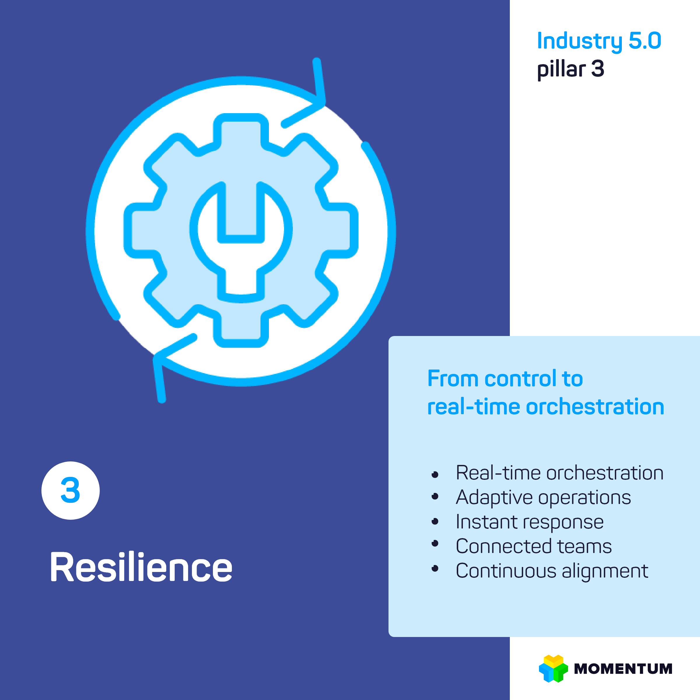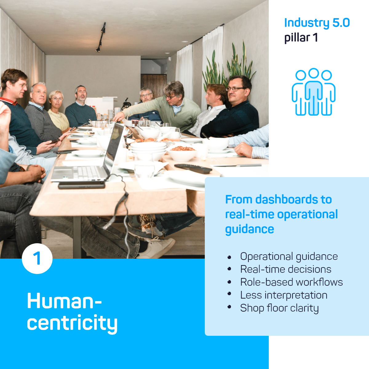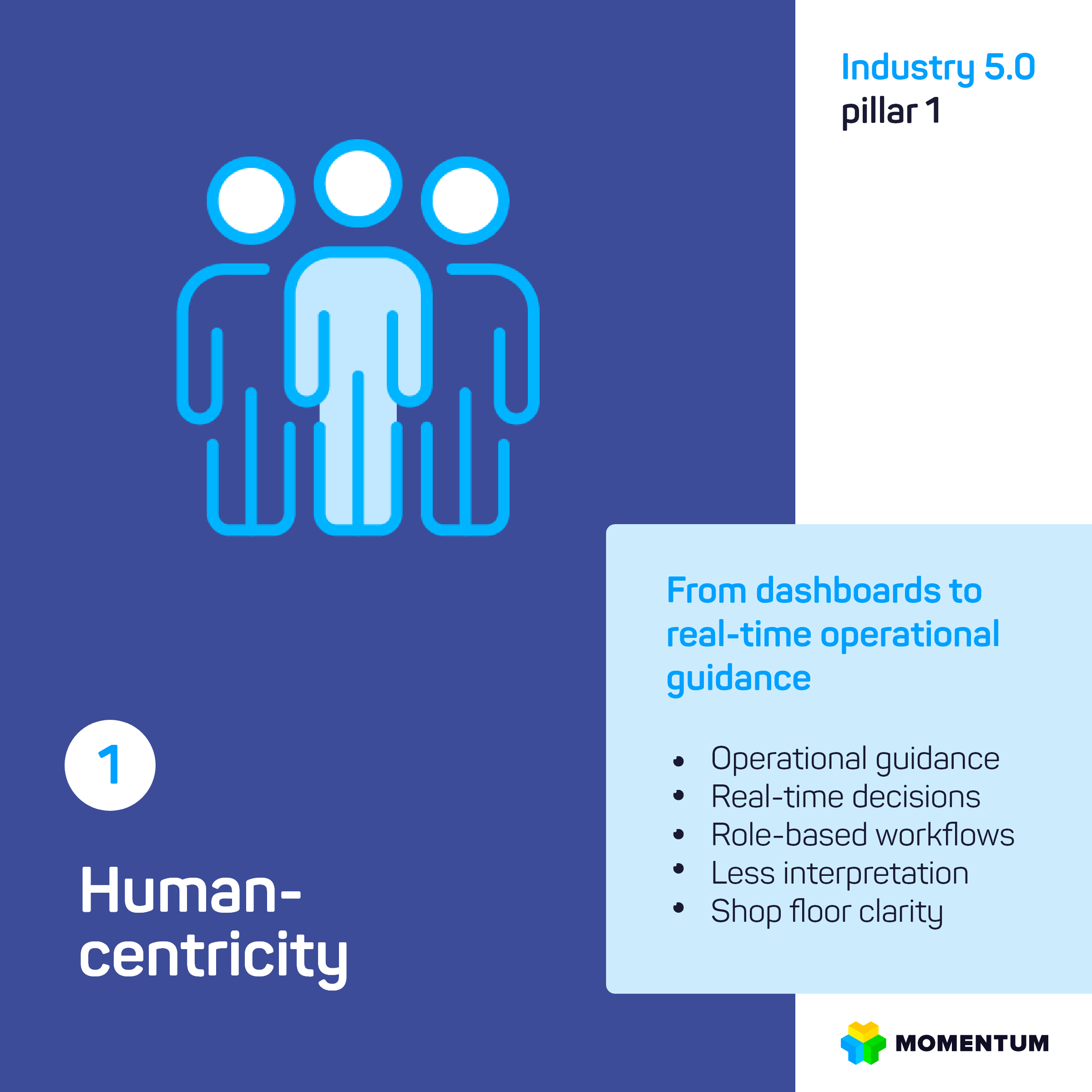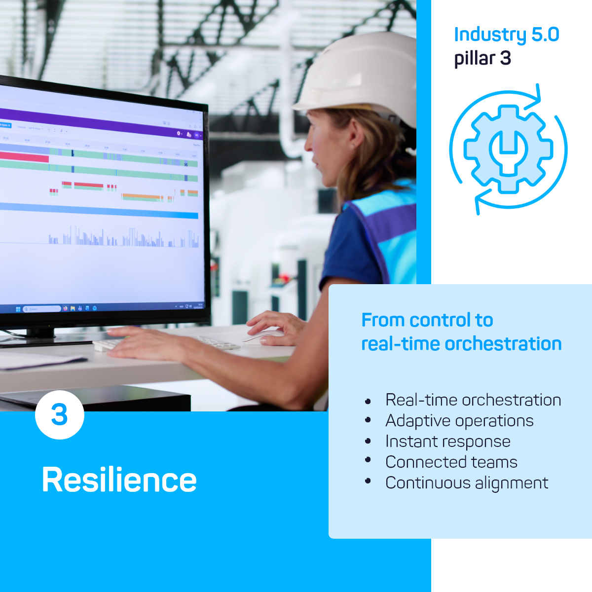 Industry 5.0 is built around three core pillars: human-centricity, sustainability and resilience. These aren't abstract ideals. They show up every day on the shop floor — in how operators make decisions, how teams respond to disruptions and how efficiently resources are used.
